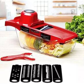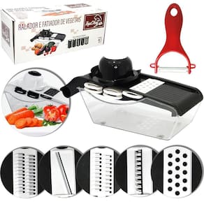 Corta seus legumes em formatos diferentesMuitas vezes, fatiar com a mão, usando uma faca, cansa, fica torto e deixa o alimento com um formato estranho para misturar na receira.Com este fatiador, você garante que cada pedacinho estará cortado igual para o seu prato ficar tão bom quanto os que vemos na televisão.É fácil de usar e de limparEla foi construída para você conseguir usar sem se cortar facilmente. O alimento passa na lâmina no ângulo exato para ele ser processado sem oferecer risco para os seus dedos tanto durante a preparação, quanto durante a lavagem, ao final.Vem com um descascadorNós fazemos questão de incluir um descascador, assim o alimento que você usar no fatiador estará descascado com a qualidade que acreditamos ser importante para qualquer receita.Mais qualidades deste fatiadorLeve e prático;Fácil de guardar;Inclui seis lâminas diferentes para você escolher o corte que mais se adequa a sua receita.EspecificaçõesMaterial: plástico, acrílico e inox.Medidas: 11cm x 30cm x 10cmCapacidade: 800mlO pacote inclui: uma lâmina, um pote de 800ml, 6 lâminas e 1 descascadoCompra 100% seguraLoja profissional- satisfação, respeito e confiança, esse é o nosso compromisso- após a confirmação de pagamento, seu pedido será enviado imediatamente- produtos com estoque disponívelAgradecemos a sua preferência em comprar conosco.
