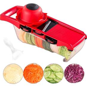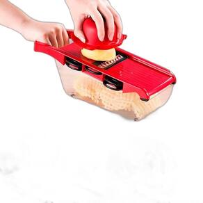 Ralador Mandolina Manual Para Fatiado De Alimentos Na Cozinha Este utensílio é perfeito para tornar o preparo dos alimentos rápido e eficiente. O ralador, Fatiador e cortador de legumes multifuncional oferece seis funções em um único produto, proporcionando praticidade e versatilidade na sua cozinha. Com lâminas afiadas de aço inoxidável, você poderá ralar, fatiar e cortar uma variedade de legumes e vegetais de forma rápida e precisa. Desde fatias finas e uniformes até ralados grossos, este utensílio atende a todas as suas necessidades culinárias. Além disso, o design ergonômico e seguro garante conforto durante o uso, enquanto a base antiderrapante mantém o utensílio firme e estável na bancada. Não perca mais tempo cortando e fatiando manualmente. Adquira agora o Ralador, Fatiador e Cortador de Legumes Chefe Multifuncional 6 em 1 e desfrute de refeições deliciosas de forma prática e rápida. Transforme sua cozinha em um espaço de criatividade gastronômica Vantagens: 5 Lâminas com diferentes cortes e 1 descascador; Cortes precisos em todas as fatias; Maior praticidade; Reduz o tempo na preparação da refeição; Ergonomicamente projetado; Acaba com o risco de lesão/corte nas mãos; Corta enorme variedade de alimentos; Fácil de limpar. Especificações Técnicas: Cor: Varia conforme disponibilidade em ; Tamanho: 32 x 9 x 11 cm; Peso: 380 g; Material: Aço Inoxidável e plástico ultra resistente; Capacidade: 800 ml; Kit Inclui: 05 lâminas, 01 placa de corte, 01 protetor de mão, 01 descascador e 01 caixa de armazenamento. Marca: Não Informado Ean: 7905310648245