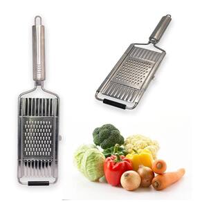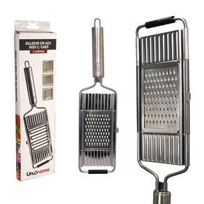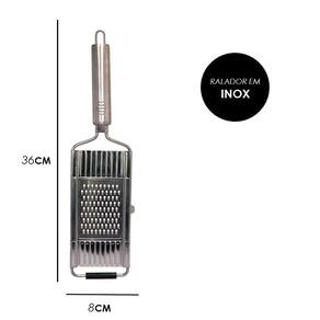Ralador Multiuso com 3 Lâminas Removíveis. Feito com design elegante e funcional o ralador em aço é uma ferramenta essencial para tornar suas refeições mais práticas e saborosas! Você poderá transformar seus alimentos favoritos em deliciosas opções raladas em questão de segundos. Seja para adicionar um toque crocante a saladas, criar fios de legumes para refogados ou preparar ingredientes para suas receitas favoritas, nosso ralador é o parceiro perfeito na cozinha. Desfrute da praticidade de ralar alimentos de forma rápida e eficiente, além disso, nosso ralador é fácil de limpar e possui 3 lâminas removíveis. ESPECIFICAÇÕES Material: Inox Dimensões: -Ralador: Comprimento 36 cm x Largura 08,05 cm -Lâminas: Comprimento 09 cm x Largura: 08,05 cm Peso: Aprox. 265g CONTÉM: 01 RALADOR MULTIUSO COM 3 LÂMINAS REMOVÍVEIS.