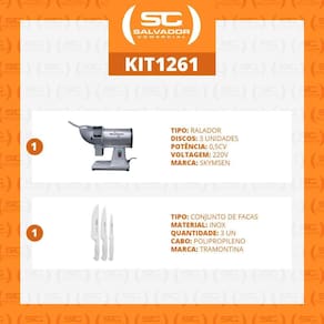 Muito importante: -- conferir produtos no ato do recebimento. Não aceitar produtos com embalagem violada amassado, rasgado, aberto, quebrado, etc , a recusa deve ser feita no ato. Componentes do kit: - 1 ralador de queijo e coco profissional restaurante desfiador 3 discos rqc 220v skymsen - 1 jogo de facas premium Ralador de queijo e coco profissional restaurante desfiador 3 discos rqc 220v skymsen: - o ralador de queijo e coco skymsen, foi desenvolvido para facilitar e acelerar os processos na cozinha, pois rala e desfia em segundos uma grande variedade de alimentos como queijos, embutidos, legumes aipim, cenoura, beterraba e rabanete , coco e chocolate, ideal para pizzarias, pastelarias, confeitarias, padarias, rotisseiras, lanchonetes, restaurantes e hotéis, que utilizam desses cortes no seu dia a dia. - sua estrutura robusta, produzida em alumínio fundido, possui bocal largo, em formato de meia lua, que facilita a alimentação e a limpeza, tornando o processo rápido. Com empurrador ergonômico acoplado ao ralador, auxilia que o alimento seja ralado até o final, aproveitando o máximo do produto. O ralador elétrico de queijo e coco acompanha 3 discos: - 1 ralador fino - ideal para queijos duros como parmesão e chocolate resfriado; - 1 desfiador fino 4 mm - ideal para legumes; - 1 desfiador grosso 8 mm - ideal para queijo, chocolate resfriado e coco. Especificações técnicas: - modelo: rqc - tensão elétrica / frequência / fases: 220 v / 60 hz / 1 - potência nominal: 368 w - potência do motor: 0,5 cv - consumo: 0,37 kw/h - rotação: 1.750 rpm - diâmetro do disco: 138 mm - dimensões axlxp : 42 cm a x 20 cm l x 57 cm p - dimensões da embalagem axlxp : 47 cm a x 60 cm l x 30 cm p - peso líquido: 15,50 - peso bruto: 17,50 kg - produção aproximada: 85 kg/h Jogo de facas premium com lâminas em aço inox e cabos de polipropileno branco 3 peças - tramontina 24499811 : 90 dias para vícios ou defeitos de fabricação. Para você preparar as refeições do dia a dia com praticidade você precisa contar com o jogo de facas tramontina premium com lâminas em aço inox e cabos de polipropileno branco 3 peças. Com esse jogo você equipa sua cozinha com peças que possuem design moderno, cabo anatômico texturizado e fio de alta durabilidade. O conforto e segurança durante o manuseio são garantidos e os itens podem ser lavados na máquina de lavar louças. São três modelos de facas especificas para cada uso, que garantem ainda mais qualidade e facilidade no corte de diferentes alimentos As lâminas de aço inox tem maior durabilidade do fio devido ao tratamento térmico. Os cabos de polipropileno possuem maior resistência e durabilidade. Podem ir à máquina de lavar louças facilitando seu dia a dia. - ean13: 7891112086562 - dun14: 17891112086569 - ncm: 8211.10.00 - cor do cabo: branco - material do cabo: polipropileno - peso líquido: 0,20 kg. - peso bruto: 0,25 kg. - medidas embalagem: 2,0cm a x 16cm l x 38cm c - conteúdo do jogo: 1 - 24472186 - faca utility lâmina 6 15,24cm 1 - 24473187 - faca para cozinha lâmina 7 17,78cm 1 - 24470184 - faca para frutas e legumes lâmina 4 10,16cm