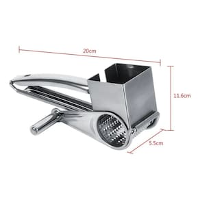 CANSADO DE RALAR OS DEDOS NO LUGAR DO QUEIJO? Quem cozinha sabe o perigo dos raladores quadrados antigos: um deslize e você se machuca. Além disso, raladores de plástico quebram fácil e exigem muita força no braço. Traga a eficiência de restaurante para sua casa com o Ralador Rotativo em Aço Inox. Mais higiênico, muito mais durável e projetado para ralar ingredientes duros em segundos, apenas girando uma manivela leve.