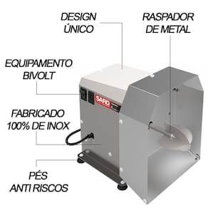 O ralador raspador de coco foi desenvolvido para tornar o trabalhado de raspar e ralar coco prático e rápido. Pode ser utilizado em bares, restaurantes, lanchonetes, confeitarias, padarias e muito mais. Esse ralador de coco elétrico é 100% fabricado em aço inox, por isso, não enferruja com facilidade, garantindo muito mais durabilidade ao equipamento. Possui um motor de alta tecnologia com placa integrada e 1/3cv de potência, proporcionando máximo desempenho ao ralador de coco raspador.
