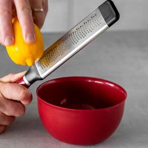 O ralador Zester da KitchenAid possui micro furos para um ralo contínuo, fácil e rápido. Perfeito para ralar gengibre, noz-moscada, chocolate e outros alimentos rígidos.