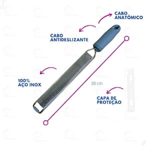 Ralador fino tipo zester em inox - precisão e versatilidade na cozinha Descrição do produto: Com o ralador fino tipo zester, você transforma o preparo dos alimentos em uma tarefa rápida e eficiente. Perfeito para ralar cascas de limão, laranja, queijos, alho, gengibre, cebola e muito mais, ele entrega resultados impressionantes com mínimo esforço. Seu diferencial está nas lâminas ultrafinas e super afiadas, que garantem cortes precisos e uniformes. Fabricado em aço inoxidável de alta durabilidade, é um item essencial para chefs, cozinheiros e amantes da cozinha criativa. Benefícios: - ideal para raspas finas de frutas cítricas e queijos duros - lâminas afiadas que reduzem o esforço no preparo - cabo ergonômico e antideslizante para mais segurança - resistente à oxidação, fácil de limpar e prático de guardar - leve e portátil - ótimo para uso doméstico ou Especificações técnicas: - material: aço inoxidável - cabo: plástico com acabamento antideslizante - cores: cabo azul - acompanha capa protetora Medidas aproximadas: - comprimento total: 38,9 - largura da lâmina: 3,6 cm Conteúdo da embalagem: - 1 ralador fino zester cabo azul A dona li utilidades traz produtos que combinam qualidade, praticidade e durabilidade para facilitar o seu dia a dia. Transforme a forma como você cozinha. Garanta já o seu ralador fino tipo zester e prepare receitas incríveis com muito mais agilidade Marca: Não Informado
