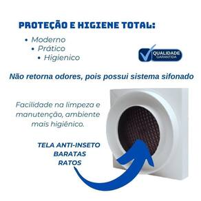 Todo o conjunto é formado por duas peças, sua instalação pode ser realizada no prolongador ou na caixa sifonada de 100 mm ( 4 polegadas ) e também pode ser instalado na caixa sifonada de 150 mm (6 polegadas).