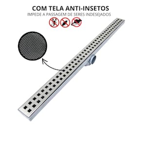 Ralo Linear modelo 5x70 Inox com lindo desenho inovador de quadradinhos que transmitem mais simetria ao ambiente ideal para banheiros, lavabos, varandas gourmet deixa seu ambiente elegante e combinam funcionalidade com beleza.