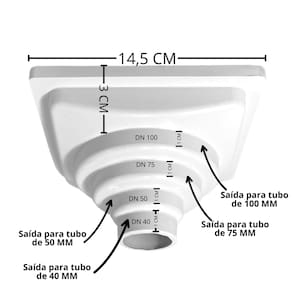 Proporciona facilidade para os projetos de drenagem de águas pluviais, coletor com saída para baixo para tubos de 40mm, 50mm, 75mm e 100mm.