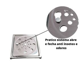 - Este ralo possui um sistema abre e fecha que elimina a passagem de insetos e mau odores.