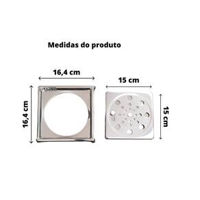 Ralo Tampa Grelha Inox Quadrado modelo 15x15 com fecho abre e fecha e aro de fixação caixilho.