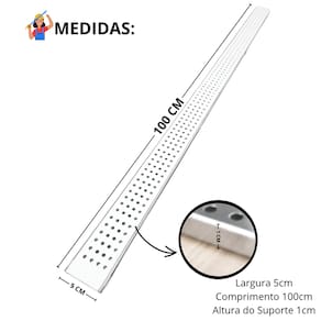 Grelha Pluvial com Suporte 100% em Inox Branco - 5cm x 100cmIdeal para quem busca aliar estética e funcionalidade, a Grelha Pluvial com Suporte é produzida em Inox, garantindo durabilidade e um acabamento sofisticado que combina com diversos ambientes, como bordas de piscina, áreas gourmet e varandas. Seu design exclusivo é pensado para atender clientes exigentes que valorizam não apenas a beleza, mas também a eficiência e a facilidade de manutenção. Seu modelo perfurado evita a passagem de insetos como baratas, escorpiões e aranhas, frequentemente atraídos por ralos pluviais. Isso torna o produto ainda mais funcional, proporcionando um ambiente mais seguro e livre de pragas. Características do Produto: • Medidas (com suporte): 5cm de largura x 100cm de comprimento x 1cm Altura • Material da Grelha: Inox, com acabamento pintura eletrostática • Ideal para: Coleta de águas pluviais em áreas externas, como quintais, bordas de piscinas, decks, áreas gourmet e varandas • Durabilidade: Não enferruja e é de fácil manutenção • Instalação recomendada: Por mão de obra especializada (não acompanha caixa coletora ideal para escoamento de alvenaria) • Atenção: Não recomendada para áreas de tráfego de veículos Conteúdo do Conjunto: • 01 Grelha em Inox • 01 Suporte (5cm x 100cm) Observações Importantes: • Produto com garantia contra defeitos de fabricação, mas não nos responsabilizamos por mau uso ou instalação inadequada. • A instalação deve ser realizada por profissional especializado para garantir o perfeito funcionamento do sistema. Produto é composto do Aro para instalar em escoamentos construídos de alvenaria devidamente impermeabilizados, NÃO POSSUI CAIXA COLETORA. Contrate mão de obra especializada para instalação correta do produto. Marca: Não Informado