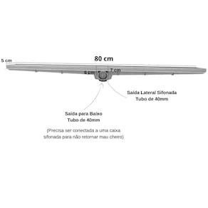 Medidas do Produto: Largura 5 cm x Altura ( Total) 7cm x Comprimento 80cm Profundidade do Coletor 6cm Conexão para Tubo de 40mm