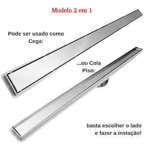 Ralo Linear modelo 5x80 Inox 2 EM 1 ideal para banheiros, lavabos, varandas gourmet deixa seu ambiente elegante e combinam funcionalidade com beleza. Pode ser utilizada na posição cola piso aonde um recorte do seu piso ou revestimento deverá ser colada na base com cola pu deixando o ralo "invisível" discreto e quase imperceptível. Existe também a possibilidade de utilização na posição oculta em inox aonde o acabamento visível é a lamina de inox polida