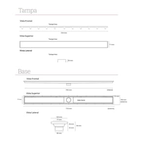 Especificações Gerais do Produto: - Dimensões AxLxP (mm): - Base: 26x735x103 - Tampa: 26x700x71- Cor: Inox Escovado- Material: Base em ABS e Tampa em Aço Inox 304- Garantia: 10 anos junto ao fabricante- Referência: 8604- Linha: Royal- Formato: Linear- Compatibilidade: Acoplável em caixas sifonadas de 100mm e de 150mm e compatível com tubo de 50mm (necessário o uso da bolsa acoplável da marca Novii (não incluso))- Fecha Ralo (previne o retorno de insetos pela tubulação): Sim- Saída: Base com saída central de 50mm- Grade Retentora (previne entupimentos na tubulação de esgoto): Sim- Abas para prevenir infiltrações: Sim- Sugestão de Uso: Ideal para banheiros em geral e espaços gourmet- Base com altura reduzida: Permite a instalação no contrapiso- Queda Interna: Sim (ajuda a água fluir naturalmente para saída do ralo seco)- Tipo: Seco- Local de Uso: Interno O que vem na caixa:1 Base do ralo em ABS1 Tampa removível de Aço Inox 3041 Grade Retentora1 Fecha Ralo1 Ventosa para remoção da tampa