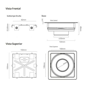 Especificações Gerais do Produto: Dimensões AxLxP (mm)Base: 48x125x125; Subtampa: 23,80x100x100Material: Base em PVC e Subtampa em Aço Inox 304Garantia: 10 anos junto ao fabricanteReferência: 7343Linha: SquareFormato: QuadradoCompatibilidade: Acoplável em caixas sifonadas de 100mm e compatível com tubo de 50mmFecha Ralo (previne o retorno de insetos pela tubulação): SimModelo Oculto: A subtampa funciona como berço para acomodar uma tira de piso colada como acabamento final.Saída: Saída Central VerticalGrade Retentora (previne entupimentos na tubulação de esgoto): SimAbas para prevenir infiltrações: SimSugestão de Uso: Ideal para salas de banho, banheiros em geral, lavação ou áreas de serviço e reformas.Base com altura reduzida: Permite a instalação no contrapisoQueda Interna: Sim (ajuda a água fluir naturalmente para saída do ralo seco)Tipo: SecoLocal de Uso: Interno O que vem na caixa:1 Base do ralo1 Subtampa removível de Aço Inox 3041 Grade Retentora1 Fecha Ralo1 Ventosa para remoção da tampa