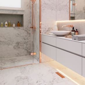 Dimensões AxLxP (mm): Base: 48x273x100; Tampa: 26x248x71Cor: Red GoldMaterial: Base em PVC e Tampa em Aço Inox 304Garantia: 5 anos junto ao fabricanteReferência: 2920Linha: TinyFormato: LinearCompatibilidade: Acoplável em caixas sifonadas de 100mm e de 150mm e compatível com tubo de 50mm (necessário o uso da bolsa acoplável da marca Novii - não incluso)Fecha Ralo (previne o retorno de insetos pela tubulação): SimSaída: Base com saída lateral de 50mmGrade Retentora (previne entupimentos na tubulação de esgoto): SimAbas para prevenir infiltrações: SimSugestão de Uso: Ideal para banheiros, como ralo de segurança, ou no box.Base com altura reduzida: SimPermite a instalação no contrapiso: SimQueda Interna: Sim (ajuda a água fluir naturalmente para saída do ralo seco)Tipo: SecoProcesso de Coloração da Tampa: PVDLocal de Uso: Interno O que vem na caixa:1 Base do ralo em PVC1 Tampa removível de Aço Inox 3041 Grade Retentora1 Fecha Ralo1 Ventosa para remoção da tampa