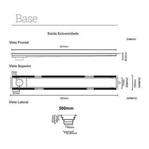 Ralo Linear Elleve Versatile 4251 50cm Saída Na Extremidade Com Tampa Oculta Oculta 4251 Especificações Gerais do Produto: - Dimensões AxLxP (mm): - Base: 29x523x100 - Subtampa: 16,4x498x71- Material: Base em PVC e Subtampa em Aço Inox 304- Garantia: 5 anos junto ao fabricante- Referência: 4251- Linha: Versatile- Formato: Linear- Compatibilidade: Acoplável em caixas sifonadas de 100mm e de 150mm e compatível com tubo de 50mm (necessário o uso da bolsa acoplável da marca Novii (não incluso))- Fecha Ralo (previne o retorno de insetos pela tubulação): Sim- Modelo Oculto: A subtampa funciona como berço para acomodar uma tira de piso colada como acabamento final.- Saída: Base com saída lateral de 50mm com eixo a 5,5cm da lateral da base- Filtro (previne entupimentos na tubulação de esgoto): Sim- Sugestão de Uso: Ideal para banheiros em geral e espaços gourmet- Base com altura reduzida: Permite a instalação no contrapiso- Queda Interna: Sim (ajuda a água fluir naturalmente para saída do ralo)- Observação: Produto com e sem sifonagem vertical: permite escolher entre instalar o ralo como sifonado ou como seco- Tipo: Seco/Sifonado- Local de Uso: Interno O que vem na caixa:1 Base do ralo em PVC1 Subtampa removível de Aço Inox 3041 Sifão Grupo Linear1 Grade Retentora1 Fecha Ralo1 Ventosa para remoção da tampa
