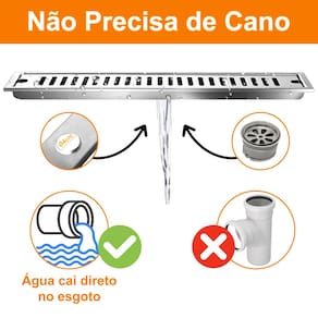 Ralo Linear Embralumi Grelha Aço Inox Banheiro 50x10cm (Não é possível colocar piso no ralo)