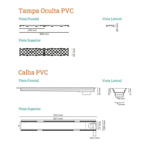 - Dimensões AxLxP (mm): - Calha: 29x523x100mm; 2 Subtampas: 26x248x76mm cada - Material: Calha em PVC e Subtampa em PVC - Garantia: 5 anos junto ao fabricante - Referência: 6086 - Formato: Linear - Compatibilidade: Acoplável em caixas sifonadas de 100mm e de 150mm e compatível com tubo de 50mm (necessário o uso da bolsa acoplável da marca Novii - não incluso) - Modelo Oculto: A subtampa funciona como berço para acomodar uma tira de piso colada como acabamento final. - Grade Retentora (previne entupimentos na tubulação de esgoto): Sim - Abas para prevenir infiltrações: Sim - Sugestão de Uso: Ideal para salas de banho e banheiros em geral. - Base com altura reduzida: Permite a instalação apenas no contrapiso, sem precisar cortar a laje - Queda Interna: Sim (ajuda a água fluir naturalmente para saída do ralo) - Observação: Indicado para áreas onde não possui caixa sifonada, pois realiza o sistema de sifonagem. - Tipo: Sifonado - Local de Uso: Interno O que vem na caixa: 1 Base do ralo de PVC 2 Subtampas ocultas removíveis de PVC (26x248x76mm cada) (AxLxP) 1 Sifão Grupo Linear 1 Grade Retentora