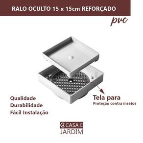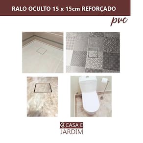 Ralo Oculto 15x15 Invisível Seca Piso Porcelanato Sifonado Ralo Oculto 15x15 Invisível Seca Piso Porcelanato Sifonado Produto em plástico com alta resistência à ação do tempo, água quente, ácidos, etc. Todo o conjunto é formado por duas peças, sua instalação pode ser realizada no prolongador ou na caixa sifonada de 100 mm 4 polegadas e também pode ser instalado na caixa sifonada de 150 mm 6 polegadas . Características Técnicas: Acabamento: Ralo em PVC cor BRANCA Tampa com rebaixo para instalação de pisos e porcelanatos de 10mm de espessura. Instalar a cerâmica com argamassa. Medidas: 15x15cm. Altura: 4,5cm. Área de captação total: 1.400mm, Vazão 5000ml/min. Acompanha na embalagem: Ralo invisível sifonado com tampa Proteção grade contra insetos Temos uma linha completa em tampas de ferro e pvc para construção como, tampões para proteger caixas de passagem, tampa de esgoto, tampa de águas pluviais, tampa de ferro fundido tampa de água potável, tampa para calçada, tampa de ferro elétrica, entre outros. Marca: Casa E Jardim Comércio
