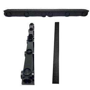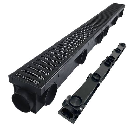 O conjunto Grelha Pluvial 8x100 é formado por: 1 - Grelhas modelo 8 Cm x 98 Cm Alumínio Sem Cantos Cortantes com pintura PRETO FOSCO 1 - Coletora Plástica Saída Linear/Lateral e Baixa ( 20 Saídas) na configuração 12 Saídas para conexão em ângulo de 90 graus – encaixe 50mm 2 Saídas Lineares ( sequencial macho / femea ) – encaixe 50mm 6 Saídas para Baixo – Encaixe dentro do Tubo de 50mm