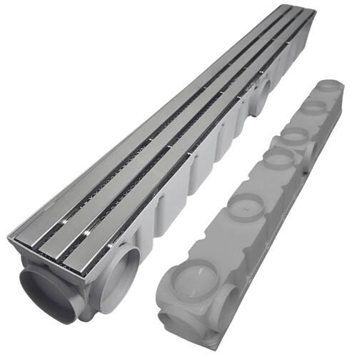 12 Saídas sendo:2 Lineares de 75mm (pontas) sistema macho/femea conect4 Opções de conexão na Lateral para ângulo de 90 graus – saídas de 75mm 6 Opções de saída para baixo – 75mmO ralo linear com 12 saídas, modelo 10x100 em inox 304 trilho com coletor modular de plástico, representa uma solução superior para sistemas de drenagem, combinando funcionalidade, durabilidade e estética moderna. Projetado para proporcionar desempenho confiável ao ambiente, é a escolha ideal para quem busca qualidade e eficiência na gestão de águas pluviais.
