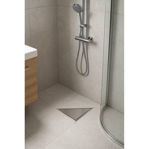 Ralo Triangular Inox 20x20cm com Tampa Invisível – Ideal para Canto de Banheiro
