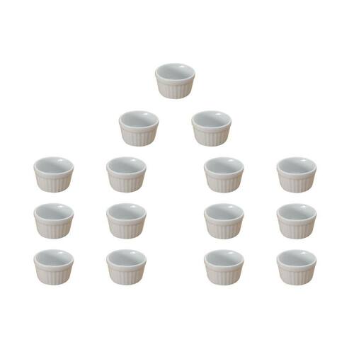 Ramekin forma assar porta molho grande kit 15 unid atacado Os ramekins redondos são ideais para sua casa e para qualquer preparo atende diversas receitas que precisam ir ao forno, pois é resistente e podem ser levados à mesa tranquilamente. As porcelanas oferecem todo requinte para servir e criar produções de mesa posta harmonizando qualidade e sofisticação, além de ser o material mais nobre que existe para a produção de louças. Sua composição é uma mistura entre argila, quartzo, caulim e feldspato, o resultado é um utensílio resistente e com qualidade impressionante.