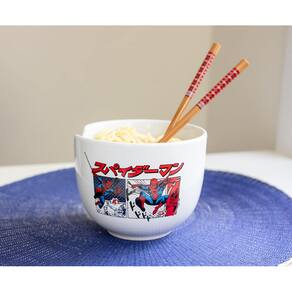 Silver Buffalo Marvel Homem-Aranha Mangá Japonês Painéis Quadrinhos Cerâmica Ramen Noodle Tigela de Arroz com Pauzinhos, Seguro para Microondas, 590 ml