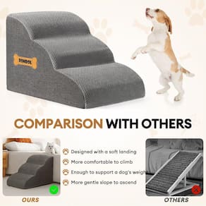 - 🐶 Design adequado para cães: diferente das escadas tradicionais de ângulo reto para cães, esta rampa inclinada para cães, projetada mais cientificamente, é mais adequada para cachorros e animais de estimação com lesões nas articulações do joelho. O tamanho da escada de 2 degraus para animais de estimação é de 23* 15* 15 polegadas, seja na cabeceira, no sofá ou na janela saliente. 💕 Observe que, devido ao corte e à compressão a vácuo, a esponja pode levar no mínimo 24 horas para se recuperar totalmente e pode haver variações no tamanho. 💕