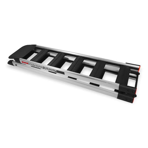 Fabricada em alumínio aeronáutico de alta qualidade, a rampa é incrivelmente leve para manuseio individual, mas extremamente forte para suportar o peso da sua máquina.