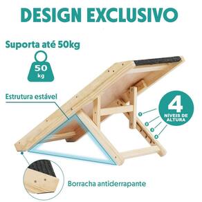 A rampa possui quatro níveis de altura diferentes, o que permite ajustar a inclinação de acordo com as necessidades do animal e a altura do móvel. Essa versatilidade é especialmente útil para animais com mobilidade reduzida, idosos ou com problemas nas articulações, facilitando o acesso a áreas mais altas sem que precisem pular ou forçar demais as articulações.
