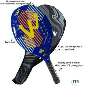 Raquete Beach Tênis 100% Fibra De Carbono Eva Soft Tour Azul