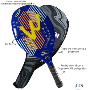 Raquete beach tennis camewin modelo br-4009 com capa protetora + overgrip + bola ++ qual a diferença entre as raquetes modelo 2022 e as novas 2023 ++ + possui pintura eletrostática envernizada, com grafismos mais moderno, além do tratamento microgranulado para efeitos em suas jogadas . Ajustes feitos pela camewin levando beleza, sofisticação e melhor equilíbrio e desempenho em seus jogos + As raquetes de beach tennis camewin são fabricadas em fibra de carbono e conta com a tecnologia que contribuem para sua alta performance, leveza e minimiza as chances de lesões. Desenvolvida para atletas que amam o esporte, desde os iniciantes aos mais experientes. Com elas os jogadores conseguirão fazer jogadas incríveis, sem exigir tanto das mãos e dos braços Características: - linha com alta velocidade de batidas; - superfície áspera com tratamento, para melhor aderência e jogadas de efeito; - 50 cm de comprimento para maior alcance e potência; - design super leve e resistente, proporcionando grande diferencial aos jogadores; - espessura fina, oferece controle e influencia no conforto ao rebater a bolinha; - material de alta qualidade e durabilidade; - o melhor custo-benefício do mercado; - modelo estiloso, moderno, com cores e desenhos vivos, que transmite personalidade ao jogador; - acompanha capa para transporte e overgrip para preservação da raquete, além da bola, prontinho para usar. Informações técnicas: Composição: fibra de carbono frame e corpo Praticantes: beach tennis do nível básico ao avançado Material externo: fibra de carbono Material interno: eva Peso aproximado: 315g a 330g Comprimento: 50cm Largura: 23,3cm Espessura: 2,2cm Comprimento do punho: 15cm Grip: 4 3/8 polegadas Frame: carbono Face: fibra de vidro Cor: solar blue 26 furos / pixel blue 26 furos / pixel green 26 furos / cyclone red 20 furos / jaws red 20 furos / tour 26 furos Furos: acima descrito do fabricante: contra defeito de fabricação 90 dias Origem: Itens inclusos: - 1 raquetes beach tennis - 1 capa de proteção - 1 overgrip - 1 bola - qual o prazo de envio R: nosso envio é imediato em até 24 horas após a confirmação de compra - possui R: sim de fábrica de 90 dias - qual material da raquete R: a frame em fibra de carbono e corpo em fibra de vidro. - o que acompanha o produto R: acompanha 1 raquete com capa, overgrip e bola. Marca: Não Informado Ean: 7907428643808
