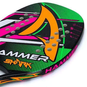 Descrição da Raquete de Beach Tennis Shark Hammer A Shark é uma das marcas referência no mundo do Beach Tennis, conta com uma ampla linha de raquetes de todos os níveis e sempre com excelente qualidade. Um exemplo disso é a Raquete de Beach Tennis Shark Hammer, ela foi desenvolvida com tecnologia EVA Soft. Conheça as Características da Raquete de Beach Tennis Shark Hammer - Perfil: Iniciante; - Coleção: 2022; - Composição: Estrutura: Fibra de Vidro. Superfície: Fibra de Vidro. EVA: Soft; - Tecnologia: EVA SOFT: É composta de material com elasticidade e leveza, proporcionando maior potência, conforto, durabilidade e permitindo uma boa absorção de vibração nas jogadas. TUBULAR TECH: Estrutura que auxilia na redução das vibrações; - Detalhamento: Possui uma pintura com tratamento microgrânulos que ajudam a gerar efeitos, contém 14 furos, balanço equilibrado, acompanha capa; - Comprimento: 50 cm; - Peso Aproximado: 320 - 330g; - Espessura: 22 mm; - Garantia do Fabricante: 90 dias contra defeito de fabricação; - Origem: Importado.