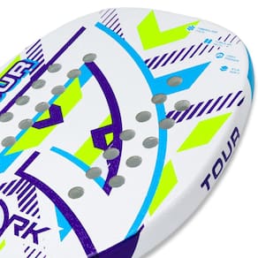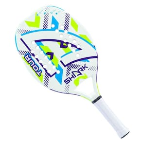 Descrição da Raquete de Beach Tennis Shark Tour New A Shark é uma das marcas referência no mundo do Beach Tennis, conta com uma ampla linha de raquetes de todos os níveis e sempre com excelente qualidade. Um exemplo disso é a Raquete de Beach Tennis Shark Tour New, ela foi desenvolvida com tecnologia EVA Soft. Conheça as Características da Raquete de Beach Tennis Shark Tour New - Perfil: Iniciante; - Coleção: 2023; - Composição: Estrutura: Fibra de Vidro. Superfície: Fibra de Vidro. EVA: Soft; - Tecnologia: EVA SOFT: Absorção de impactos. TUBULAR TECH: Tecidos tubulares duplos de carbono pré-impregnados com resinas de máxima durabilidade, proporcionando homogeneidade em todas as áreas da face e proporcionando maior rigidez, portanto, não é perdida energia da batida devido à distorção da armação; - Detalhamento: Possui uma pintura com tratamento microgrânulos que ajudam a gerar efeitos. 24 furos, acompanha capa; - Comprimento: 50 cm; - Peso Aproximado: 320 - 330g; - Equilíbrio: Levemente na cabeça; - Espessura: 22 mm; - Garantia do Fabricante: 90 dias contra defeito de fabricação. OBS: Raquetes personalizadas (com tratamento adicional) perdem a garantia do fabricante; - Origem: Importado.