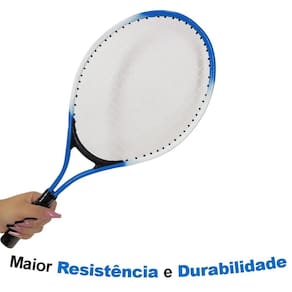 Raquete tênis de quadra azul semi + bolinha Por que comprar com a imports - enviamos em até 24 horas - produto testado e muito bem embalado para chegar em perfeito estado - foco total no cliente Informações importantes: - modelo: raquete de tênis quadra + 1 bola - material raquete: alumínio - material bolinha: feltro e borracha - encordoamento: 21x16 - empunhadura confortável antiderrapante - cabo anatômico - excelente absorção de impacto - artigo esportivo
