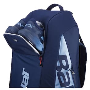 - Detalhamento: Dois compartimentos principais que juntos comportam até seis raquetes sem capa, sendo que um dos compartimentos é térmico, bolso externo com organizador e bolso interno, e um bolso frontal com respiro para acomodar peças úmidas ou um par de calçados, alças ajustáveis e acolchoadas, escrita Babolat na lateral;