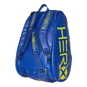 Raqueteira de Beach Tennis Heroes Thunder Azul Raqueteira Beach Tennis e Padel Heroes Thunder - Cores Raqueteira esportiva em material sintético com dois compartimentos para raquetes nas áreas laterais, compartimento principal com capacidade até 06 Raquetes com Capa e bolso ventilado para armazenar roupas sujas e calçados, além de dois bolsos laterais para guardar acessórios. Modelo de mochila com alças de ombro que facilitam o transporte. Características da Raqueteira Beach Tennis e Padel Heroes Thunder - Cores Material: material sintético Ecológico Dimensão: 42cm x 60cm x 32cm Cores: Brancocom Dourado, Preto com Amarelo, Azul com Amarelo, Vermelho com Dourado Origem: '. Marca: Não Informado