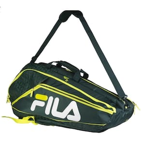 Raqueteira de Tenis Fila Champion VerdeCor Verde / AmareloComposição: 100% PoliamidaLeva até 6 raquetes sem capaDimensões aproximadas: 84cm de comprimento, 39cm de altura1 amplo compartimento principal com capacidade para até 6 raquetes sem capas termico 1 bolso em cada lateralFechamento em zíperAlças acolchoadas e reforçadas Alças centrais de mão para facilitar o transporteImportado e Oficial FIla Marca: Não Informado
