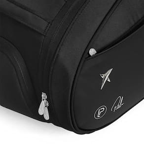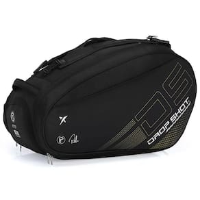 Raqueteira Drop Shot Bentor Lima Beach e Padel Preta, uma bolsa prática e funcional que vai facilitar o transporte das suas raquetes e pertences. Conheça as características da Raqueteira Drop Shot Bentor Lima Beach e Padel Preta - Perfil: Padel e Beach Tennis. - Material: 100% poliéster. Detalhamento: Raqueteira simples que comporta até 10 raquetes de beach tennis sem capa ou 7 raquetes de padel sem capa, são dois compartimentos sendo: um principal de maior tamanho com fechamento em zíper e bolso interno para guardar pertences pequenos também com fechamento em ziper,e outro compartimento menor térmico com fechamento em zíper, bolsos laterais com fechamento em ziper e divisões internas para melhor acomodação de seus pertences, um compartimento na parte inferior para acomodar peças úmidas e/ou calçados, alça de mão e alça de ombro ajustável, logo e escrita Drop Shot na laterais em cor contrastante, assinatura e logo de Pablo Lima nas laterais.
