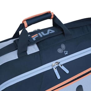Raqueteira Fila Vincitori Marinho e Azul Delave Claro Descrição da Raqueteira Fila Vincitori Marinho e Azul Delave ClaroA Fila é uma marca italiana especializada no desenvolvimento e na produção de artigos esportivos. Está presente nas principais modalidades e nos principais eventos esportivos do mundo, é patrocinadora de diversos atletas. Conheça a qualidade Fila através da prática Raqueteira Fila Vincitori Marinho e Azul Delave Claro, ela é ideal para transportar seu equipamento e acessórios com total conforto, organização e segurança. Conheça as características da Raqueteira Fila Vincitori Marinho e Azul Delave Claro- Perfil: Tennis; - Material: 100% Poliéster; - Detalhamento: Um compartimento com fechamento em zíper que comporta até 9 raquetes sem capa, um compartimento térmico, bolso para armazenar roupa molha e/ou calçados, um bolso externo em cada lateral com fechamento em zíper, alça regulável, escrita Fila nas laterais; - Garantia do fabricante: Contra defeito de fabricação; - Origem: Importado.
