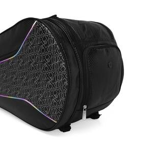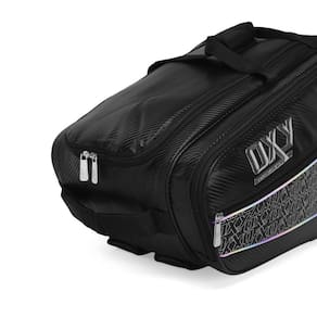 - Detalhamento: Compartimento principal amplo, com bolso interno com zíper e bolso telado para melhor organização dos objetos. Comporta até 8 raquetes de Beach Tennis ou 5 raquetes de Padel, ambas sem capa. Possui compartimento térmico que protege o equipamento contra variações de temperatura externa. Conta ainda com bolso frontal para itens de fácil acesso e bolso com respiro na parte inferior, ideal para calçado ou peças úmidas. Acompanha saco de nylon para calçados ou roupas. As alças de mão e as alças de ombro são ajustáveis e suavemente acolchoadas, garantindo mais conforto no transporte. A logo da marca está presente em ambas as laterais em destaque;