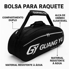 Raqueteira GUANG YU Dupla ? Mochila Profissional Para Tênis, Badminton e Mais!Leve seus jogos a um novo nível com a Raqueteira Yaonyaex Dupla, ideal para atletas exigentes que valorizam qualidade, organização e durabilidade. Projetada para armazenar com segurança até 6 raquetes, ela é perfeita para tênis, badminton ou squash. Destaques do Produto:- 2 compartimentos principais ? Espaço amplo para até 6 raquetes, protegidas contra variações extremas de temperatura.-Compartimento exclusivo para calçados e roupas ? Evita o contato com outros itens e mantém tudo organizado. - Bolsos adicionais ? Ideal para acessórios como garrafas, squeezes, lanches, celulares e muito mais. - Alças práticas ? Alça superior e na ponta para facilitar o transporte. - Design esportivo e elegante ? Perfeita para quem treina com estilo.Ficha Técnica:Tamanho:70 x 27 x 17 cmCapacidade: Até 6 raquetesMaterial: Poliéster de alta resistênciaIndicação: Tênis, Badminton, SquashDurável, funcional e com acabamento impecável, a Raqueteira Yaonyaex é a escolha certa para quem leva o esporte a sério. Não perca tempo e garanta já a sua!