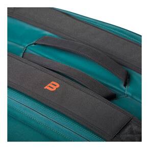 Raqueteira Wilson ESP Super Tour X9 Blade v9 é inspirada no design elegante e dinâmico da raquete Blade V9 e apresenta a mesma cor verde esmeralda. O bolso de raquetes multifuncional é o companheiro definitivo para jogadores de tênis ávidos e treinadores, comportando até 9 raquetes, equipamentos, roupas e outros itens essenciais.