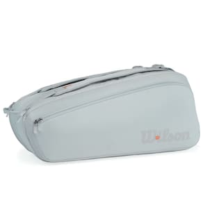 - Detalhamento: Raqueteira dupla, possui dois compartimentos principais com fechamento em zíper que comporta até nove raquetes sem capa, sendo uma delas térmica. Bolso na lateral com bolsinho interno ambos com fechamento em zíper, alças reguláveis e acolchoadas para ser transportada nos ombros e conta ainda com alça de mão reforçada, escrita Wilson em evidência nas duas faces da peça;