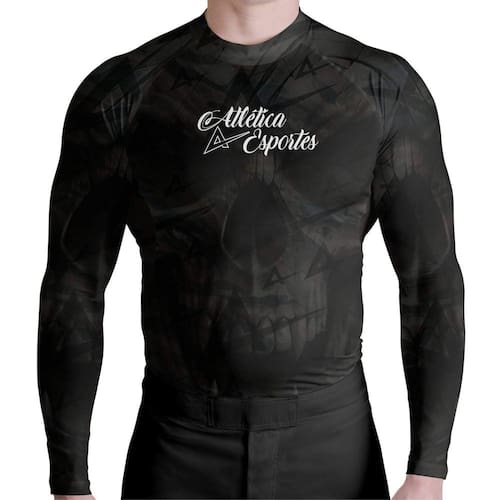 Rash Guard Masculina Atlética Esta Rash Guard é produzida com Supplex, que oferece aos nossos clientes a sensação do algodão com os benefícios da tecnologia de fibra avançada. Todo tecido utilizado nas Rash Guard pela Atlética Esportes é de alta tecnologia, próprio para melhorar o desempenho na prática esportiva. OBS: Pode haver variação na cor do produto final de acordo com o brilho do monitor ou tela do celular. Composição: Rash Guard é confeccionada em Suplex de Poliester: 91,7% Poliester / 8,3% Elastano. Medidas aproximadas que essa Rash Guard veste: P - Largura: 45cm - Altura: 67 cm M - Largura: 46,5cm - Altura: 69 cm G - Largura: 48cm - Altura: 71 cm GG - Largura: 50cm - Altura: 73 cm Seus principais atributos na prática de atividades físicas são: - Adere totalmente ao corpo com equilibrada compressão, atributos necessários na prevenção de câimbras e distensões musculares; - Proporciona conforto, liberdade de movimentos e resistência; - Não cria odores de transpiração; -Mantém a temperatura corporal; - Não perde a cor nas lavagens; - Possui proteção contra raios UV; Nossas Rash Guard proporcionam maior velocidade de secagem, maior conforto térmico, ou seja, rápida transferência do calor e umidade do corpo para o ambiente através do tecido. Dicas de Cuidado: - A roupa suja não deve ser acumulada por muito tempo, devendo ser mantida seca e longe da luz solar e em local fresco e arejado (nunca deixar embalada em sacos plásticos). - Separar as cores claras e escuras. - Usar sabões neutros, utilizando sempre a quantidade indicada pelo fabricante (o sabão deve ter na embalagem a garantia de que é específico para artigos delicados). - Não deixe molhado, não torça e não guarde molhado.
