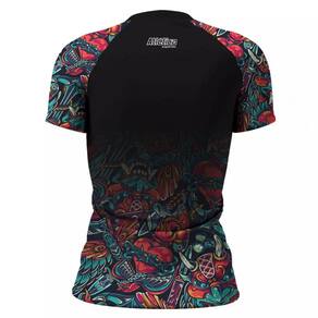Rash Guard é confeccionada em Suplex de Poliester: 91,7% Poliester e 8,3% Elastano.