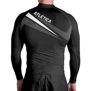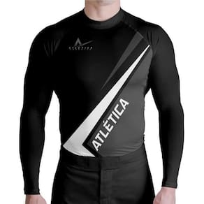 Rash Guard Masculina Atlética Esta Rash Guard é produzida com Supplex, que oferece aos nossos clientes a sensação do algodão com os benefícios da tecnologia de fibra avançada. Todo tecido utilizado nas Rash Guard pela Atlética Esportes é de alta tecnologia, próprio para melhorar o desempenho na prática esportiva. Composição: Rash Guard é confeccionada em Suplex de Poliester: 91,7% Poliester / 8,3% Elastano. Medidas aproximadas que essa Rash Guard veste: P - Largura: 45cm - Altura: 67 cm M - Largura: 46,5cm - Altura: 69 cm G - Largura: 48cm - Altura: 71 cm GG - Largura: 50cm - Altura: 73 cm Seus principais atributos na prática de atividades físicas são: - Adere totalmente ao corpo com equilibrada compressão, atributos necessários na prevenção de câimbras e distensões musculares; - Proporciona conforto, liberdade de movimentos e resistência; - Não cria odores de transpiração; - Mantém a temperatura corporal; - Não perde a cor nas lavagens; - Possui proteção contra raios UV; Nossas Rash Guard proporcionam maior velocidade de secagem, maior conforto térmico, ou seja, rápida transferência do calor e umidade do corpo para o ambiente através do tecido. Dicas de Cuidado: - A roupa suja não deve ser acumulada por muito tempo, devendo ser mantida seca e longe da luz solar e em local fresco e arejado (nunca deixar embalada em sacos plasticos). - Separar as cores claras e escuras. - Usar sabões neutros, utilizando sempre a quantidade indicada pelo fabricante (o sabão deve ter na embalagem a garantia de que é específico para artigos delicados). - Não deixe molhado, não torça e não guarde molhado.