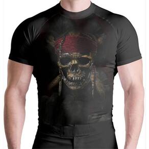 Rash Guard Skull Pirata Masculino Manga Curta - Preto - G