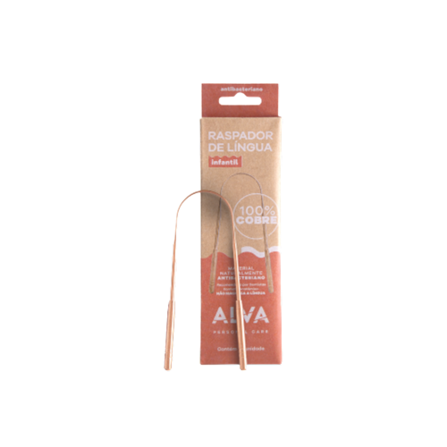 Raspar a língua com o Raspador de Língua de Cobre Infantil Alva 1 Unidade é a maneira mais eficaz de remover as impurezas da boca.
